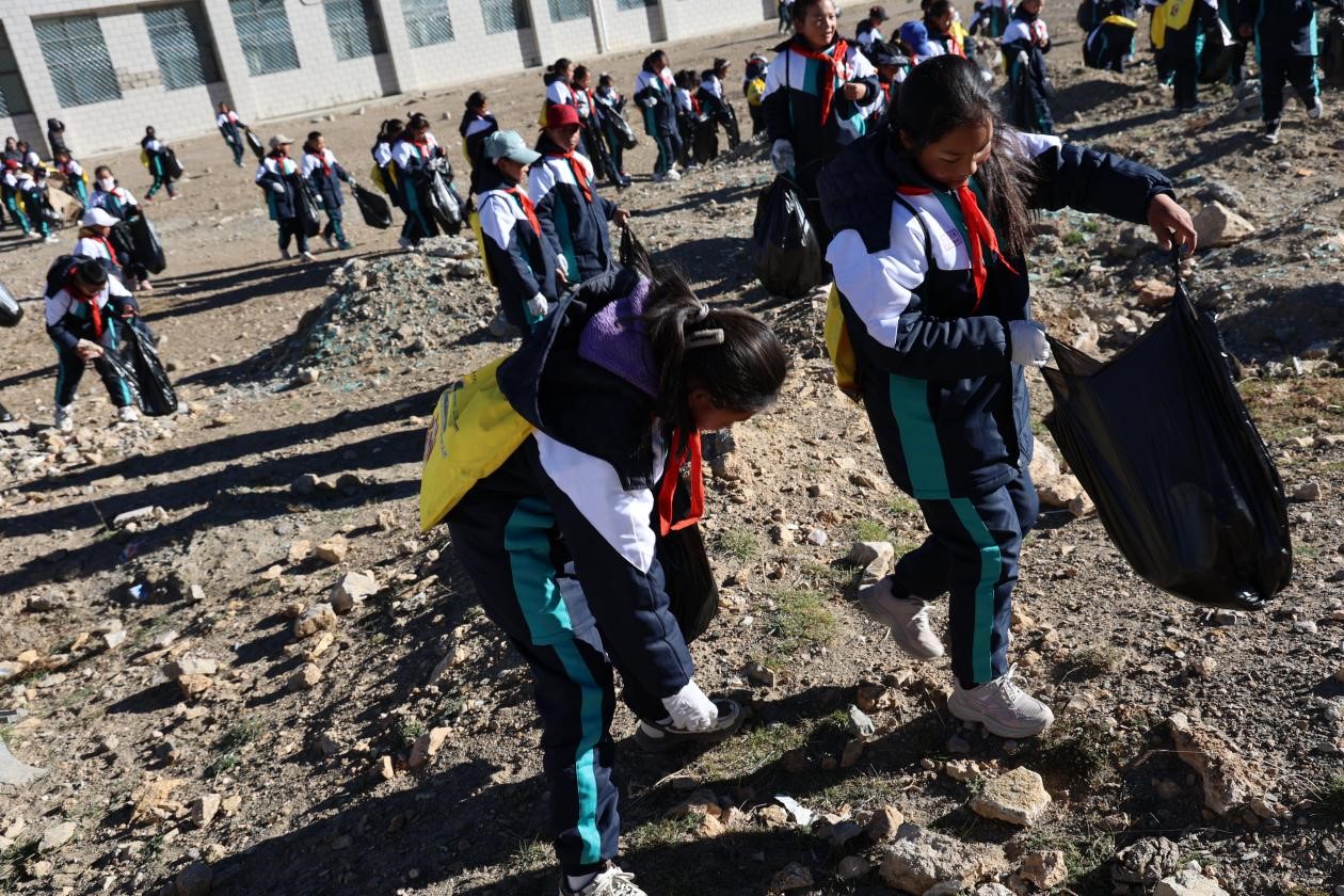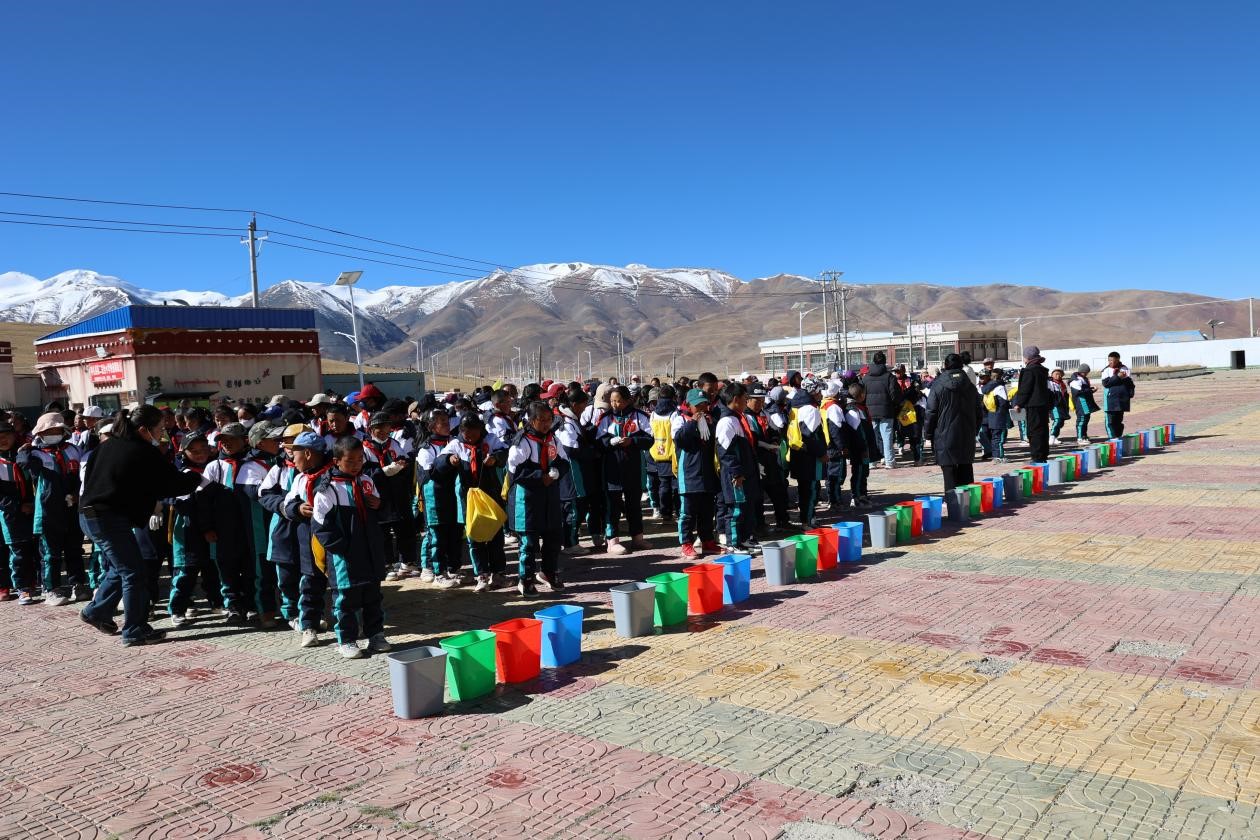 中華環(huán)境保護(hù)基金會理事長徐光、網(wǎng)信辦項(xiàng)目人員劉慧雯;中國環(huán)境出版集團(tuán)黨委委員、副總經(jīng)理陶克菲,策劃宣傳主管韓冰一;中信集團(tuán)援藏干部,那曲市委副秘書長、申扎縣縣委常務(wù)副書記,政府常務(wù)副縣長洪永;申扎縣人民政府副縣長張延飛;申扎縣教育局黨組書記、局長朗杰;那曲市生態(tài)環(huán)境局申扎縣分局主任科員尼珍;申扎縣第二小學(xué)書記邊巴央宗,校長郎加,德育副校長洛桑羅布;北京市昌平二中教師張淑春;北京教育學(xué)院附屬中學(xué)教師崔媛以及20名志愿者、450名學(xué)生參加活動。